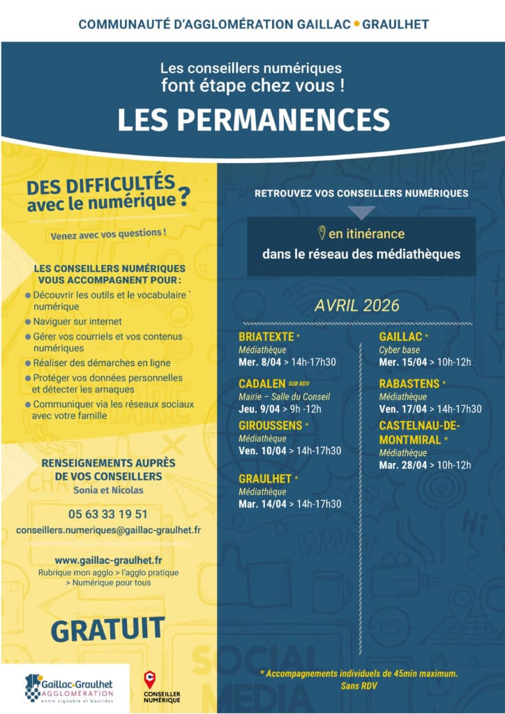 L’Agglomération vous propose, à Graulhet, un accompagnement gratuit et accessible à tous pour vous aider concrètement dans vos usages du quotidien.