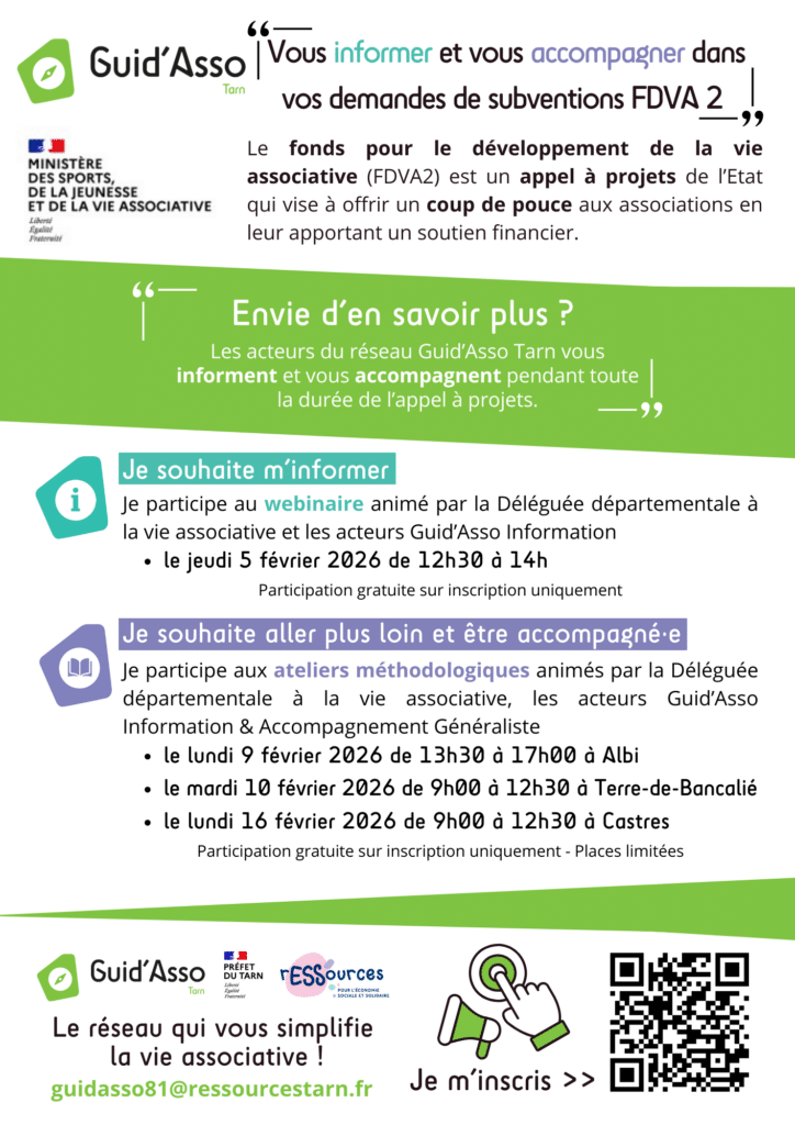 En partenariat avec le réseau guid’asso du Tarn, un webinaire de présentation de l’appel à projets est organisé le jeudi 5 février, de 12h30 à 14h.