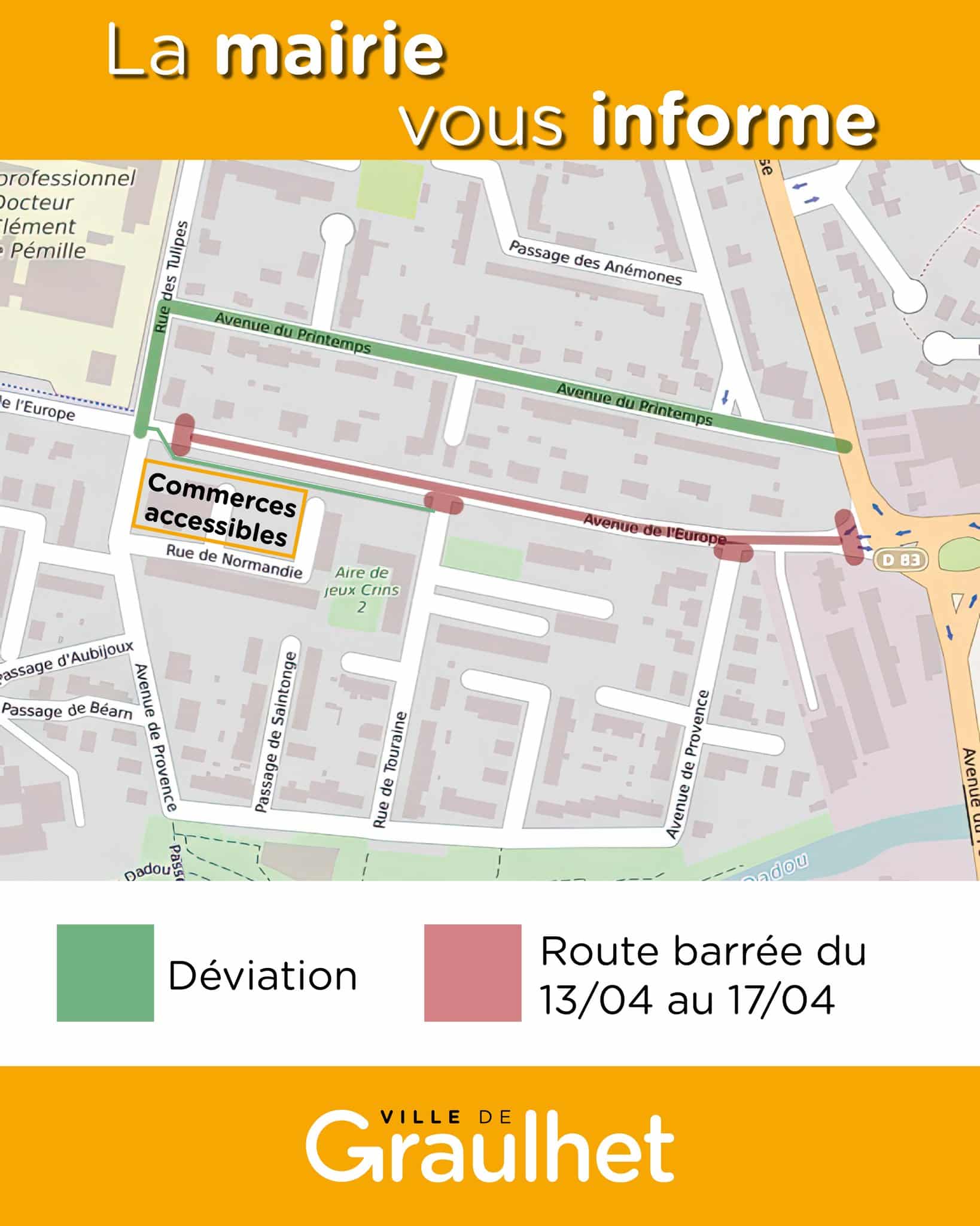 Réouverture prévue le vendredi 17 avril au soir, avec un retour à la circulation à double sens. Ces travaux, engagés pour améliorer durablement la sécurité et le cadre de vie, peuvent entraîner des perturbations. La municipalité vous remercie pour votre compréhension.