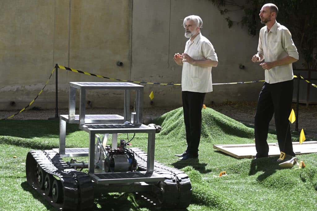 Ici, Charles Perrault est passé à la moulinette désenchantée et modernisée. Exit les princes et princesses, place aux figures d’aujourd’hui : Kim Kardashian, Elon Musk, les influenceuses, et autres personnalités de notre époque. Les châteaux et palais laissent place aux podiums de défilés et aux pistes de ski de Dubaï. Et les questions, éternellement refoulées, de violence, d’inceste, de domination et de peur ancestrale ne sont alors plus effacées d’un coup de baguette magique ! Les princesses sont-elles idiotes ; faut-il attendre le prince charmant ; qui est le loup ? Ça sera cruel et malicieux… à la Merci quoi, englués que nous sommes dans nos brutales réalités contemporaines. Et l’on s’en délecte jusqu’à en rire, malgré nous, grâce au duo à la sauce caustique que forment Georges Campagnac et Pierre-Jean Étienne. Une mise en scène pleine de surprises !