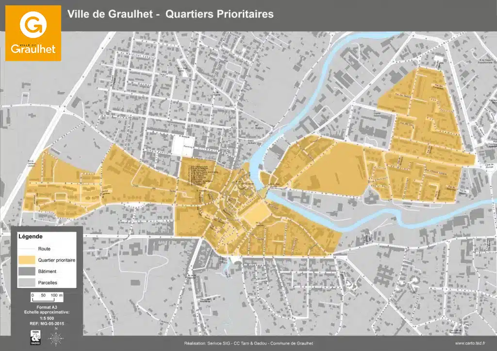 Les quartiers concernés sont définis par le décret du 30 décembre 2014 relatif aux Quartiers Prioritaires de la Politique de la Ville (QPV). À Graulhet, cela inclut les secteurs de Crins, En Gach et du centre-ville.